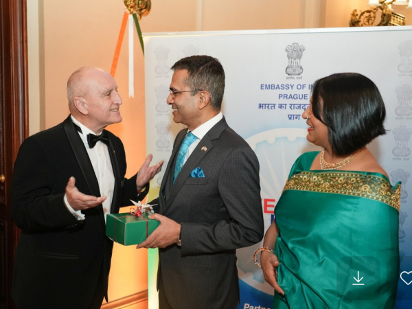 J.E. Raveesh Kumar, velvyslanec Indické republiky, uvítal hosty z řad představitelů vlády, diplomatické sféry, byznysu a přátel Indie u příležitosti oslav 76. výročí Dne republiky, vzniku nezávislé Indie.