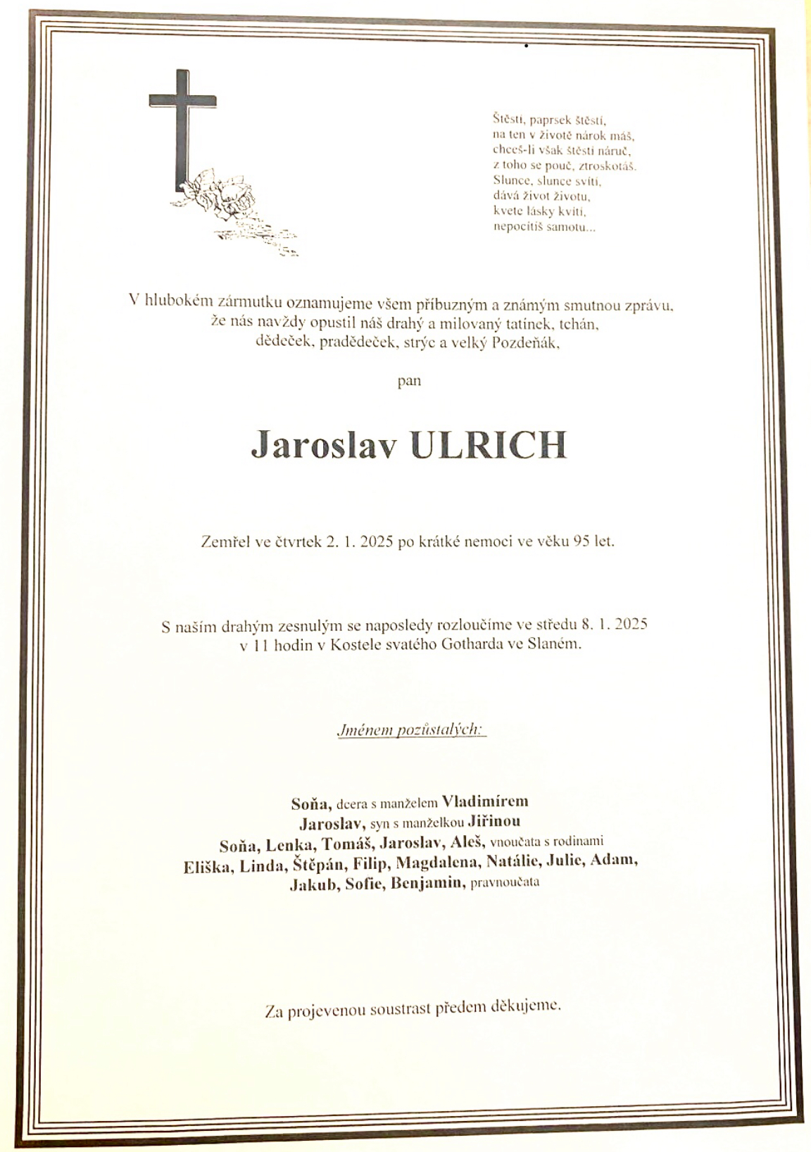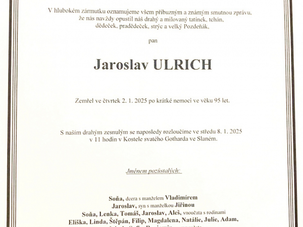 Jaroslav Ulrich odešel, ale jeho odkaz přetrvává. Jeho život je pro nás všechny připomínkou, že práce, umění a láska k druhým mohou vytvořit nesmazatelnou stopu.