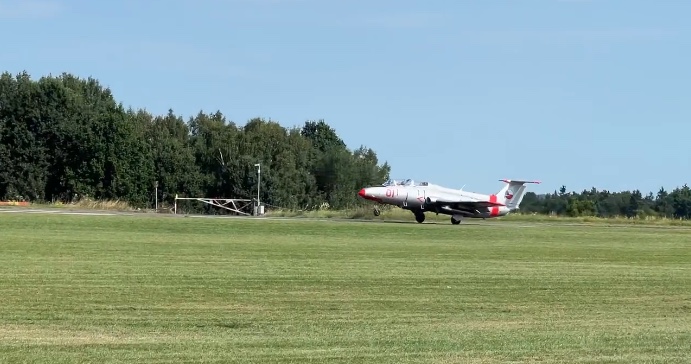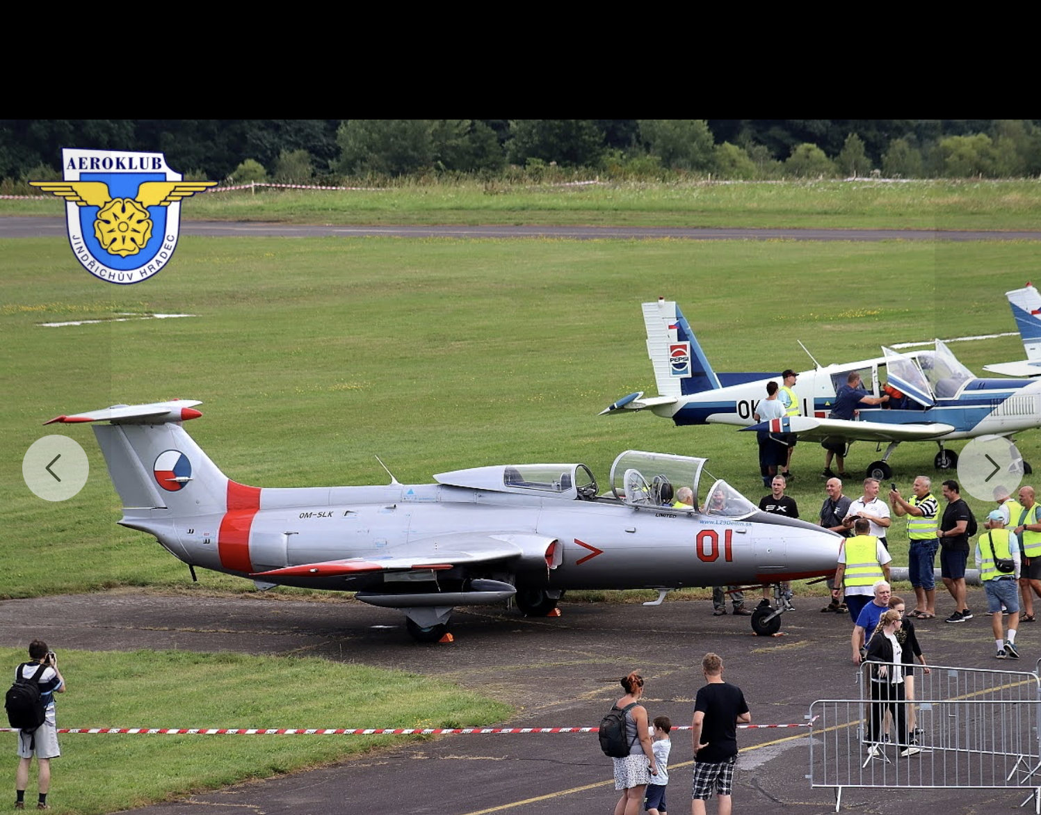 Historicky první přistání proudového letounu L29 Delfín - RZ: 0M-SLK, na letišti v Jindřichově Hradci - sobota 26.8.2023. V Neděli, 27.8.23 nám tento letoun předvedl vzlet, ukázku vyšší pilotáže a následně i další přistání na našem letišti.