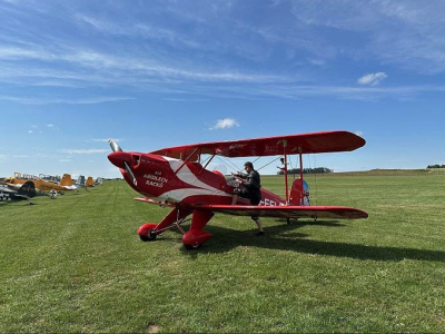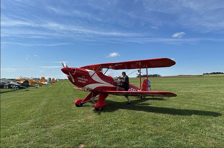 Dalším unikátem letošního Leteckého dne a zároveň programovou novinkou byl zářivě červený akrobatický letoun Bücker Jungmann D-EELE, který nad hlavami příchozích převedl dechberoucí show. „Letadlo je staré svojí konstrukcí, protože vzniklo už v roce 1934, ale tento konkrétní kus je z roku 1960 a byl vyroben v licenci ve Španělsku. Je to jedno z nejlepších cvičných akrobatických letadel, jaké kdy vzniklo. Odborníci mu říkají stradivárky mezi lehkými letadly. Krásně létá, skvěle u toho vypadá a nikdy mě nezradilo. O tomto letadle jsem četl už jako kluk a řekl jsem si, že bych ho jednou chtěl létat a asi za 20 let se mi to splnilo,“ neskrýval radost akrobatický pilot Jan Rudzynskyj, který létá se světoznámou akrobatickou skupinou The Flying Bulls.