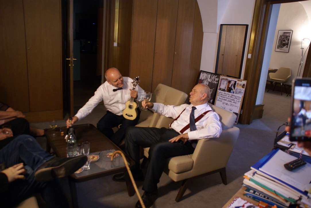Setkání v pracovně předsedy Radka Vondráčka bylo velmi přátelské – pan Ulrich mu mimo jiné zazpíval několik úryvků ze svých autorských písní, kterých složil celkem 51.