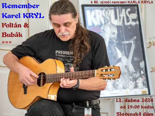 Karel Kryl by se dožil v pátek 12. dubna 2024 80.narozenin. Připomněli jsme si je koncertem "REMEMBER KAREL KRYL" večer, v sále Slovenského domu v Praze - Soukenické ulici. Zavzpomínali jsme na Karla a všichni vespolek jsme si zazpívali Karlovy nesmrtelné hity.