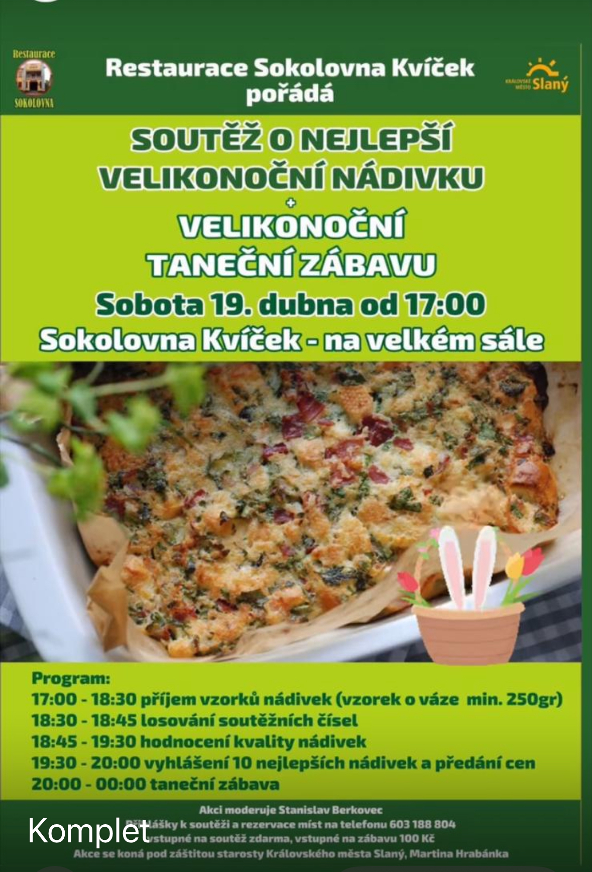 Restaurace v sokolovně ve Slaném-Kvíčku se v sobotu v podvečer stala dějištěm dalšího ročníku soutěže: "O nejlepší velikonoční nádivku". Tentokrát se o vítězství rozhodovalo z téměř dvaceti předložených vzorků.