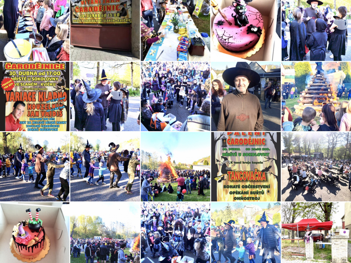 Tak jsme opět úspěšně pálili čarodějnice a těžko říci, jestli si to více užívaly děti nebo my! Spolek "Kvíček všem" (Kvíček je část našeho Královského města Slaný) pořádá tuhle akci už po mnoho let v areálu staré dobré Sokolovny. I letos se to povedlo a dokonce jsme si s panem starostou Martinem Hrabánkem s dětmi řádně zařádili. Duchovním otcem akce je známý doyen slánské ploché dráhy Petr Křikava, který hned na začátku dostal několik děkovných čarodějných polibků od dam, co už jsou po čarodějnické pubertě. Skvělá Petra ("Saxána" - na tu Saxánu ze seriálu jsme neměli, ale ta naše byla skvělá!) s dětmi řádila, učila je zumbu a spolu s Michalem ("Rumburakem") organizovala kulinářskou show, kreslení a soutěže. Malovalo se na papír i na obličej, střílelo se z kuše a z luku, tatíci preventivně a cvičně hasili (žízeň) - co kdyby se ten oheň rozšířil, že? Opékaly se buřty, maminky si přitom pokecaly, děti se pokecaly a všem bylo dobře. A hlavní organizátory v čele s Jirkou Víškem hřálo kromě sluníčka i vědomí, že udělali radost několika stovkám dětí a rodičů, jakož i přátel spolku "Kvíček všem". Takže uznejte, že zařádit si s nimi a přitom moderovat byla radost a člověk ani nemusel umět čarovat! No a podívejte na ty nádherné dorty! Cukrárna U Pudilů má ve Slaném tradici a darovala nám sladké ceny! Standa Berkovec foto: spolek Kvíček všem (Soubor fotografií pro lepší kvalitu proklikněte vlevo nahoře)