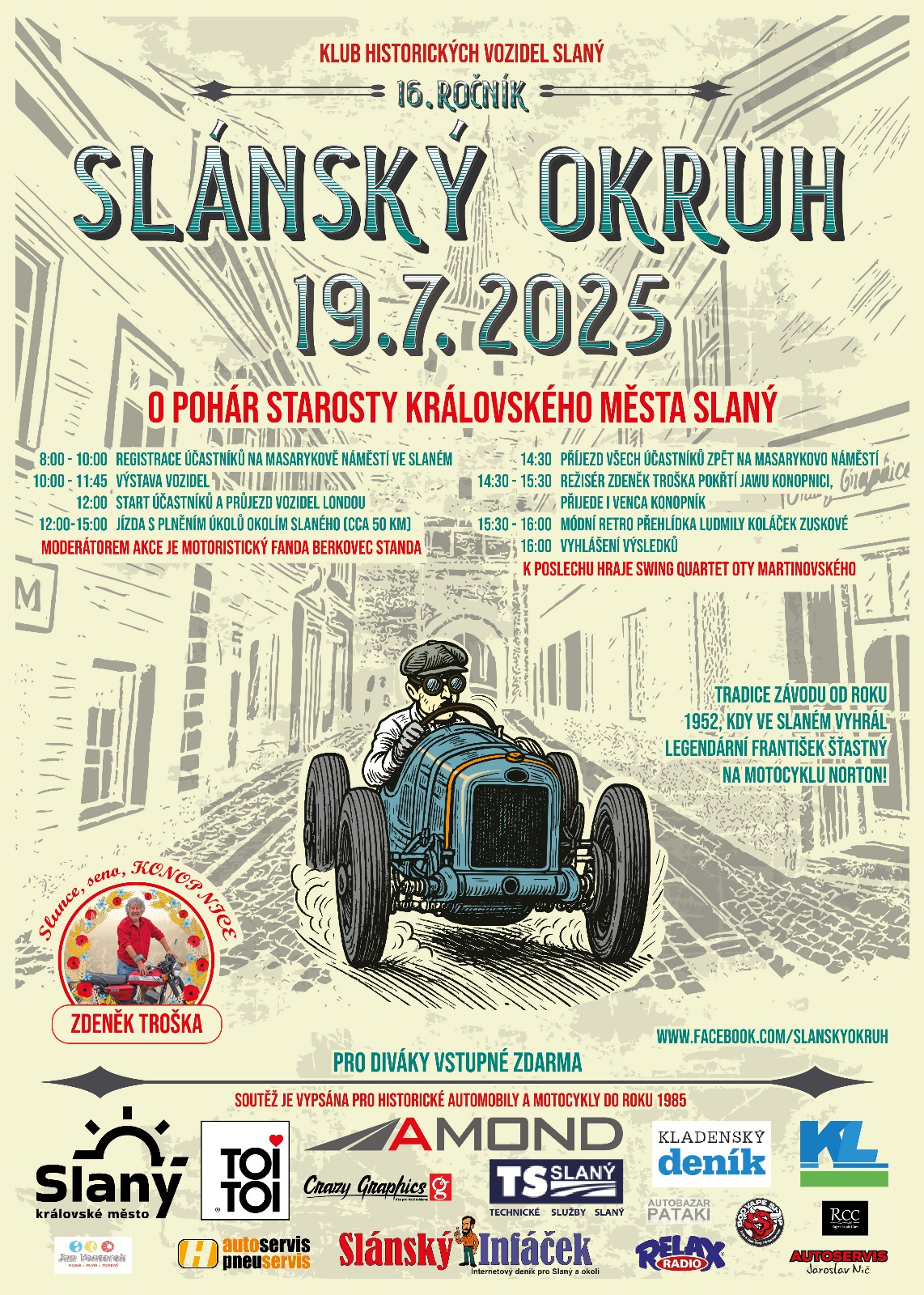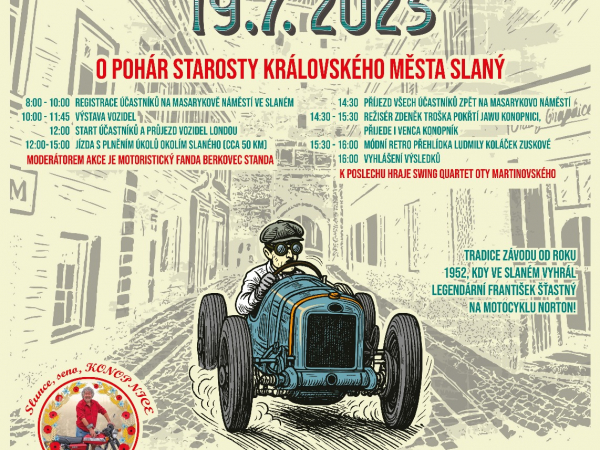 Dovoluji se Vás pozvat na veteránský závod Slánský okruh "O pohár starosty královského města Slaného", který má za sebou jubilejní novodobý XV. ročník.